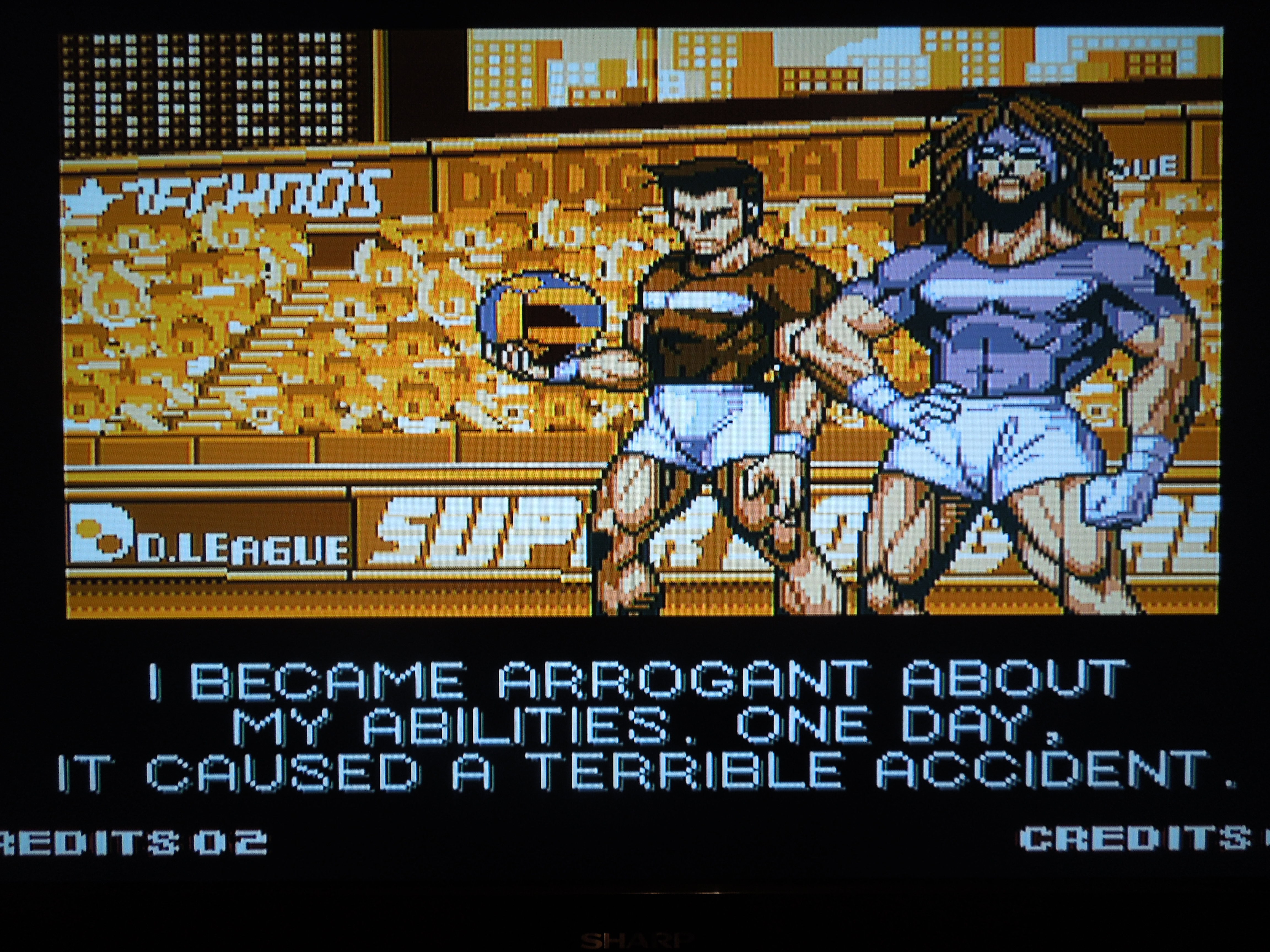 Story:  SDB’s story is one of the all time greats in video game history.  D. Maou, the game’s antagonist, used to be a great professional Dodge Ball player, until one of his ‘special’ shots accidentally killed his wife, who was in attendance at the match that day.  Since then, he has vowed to wipe Dodge Ball off the face of the Earth…and what better way to do that than…holding a Dodge Ball tournament?!  Classic.