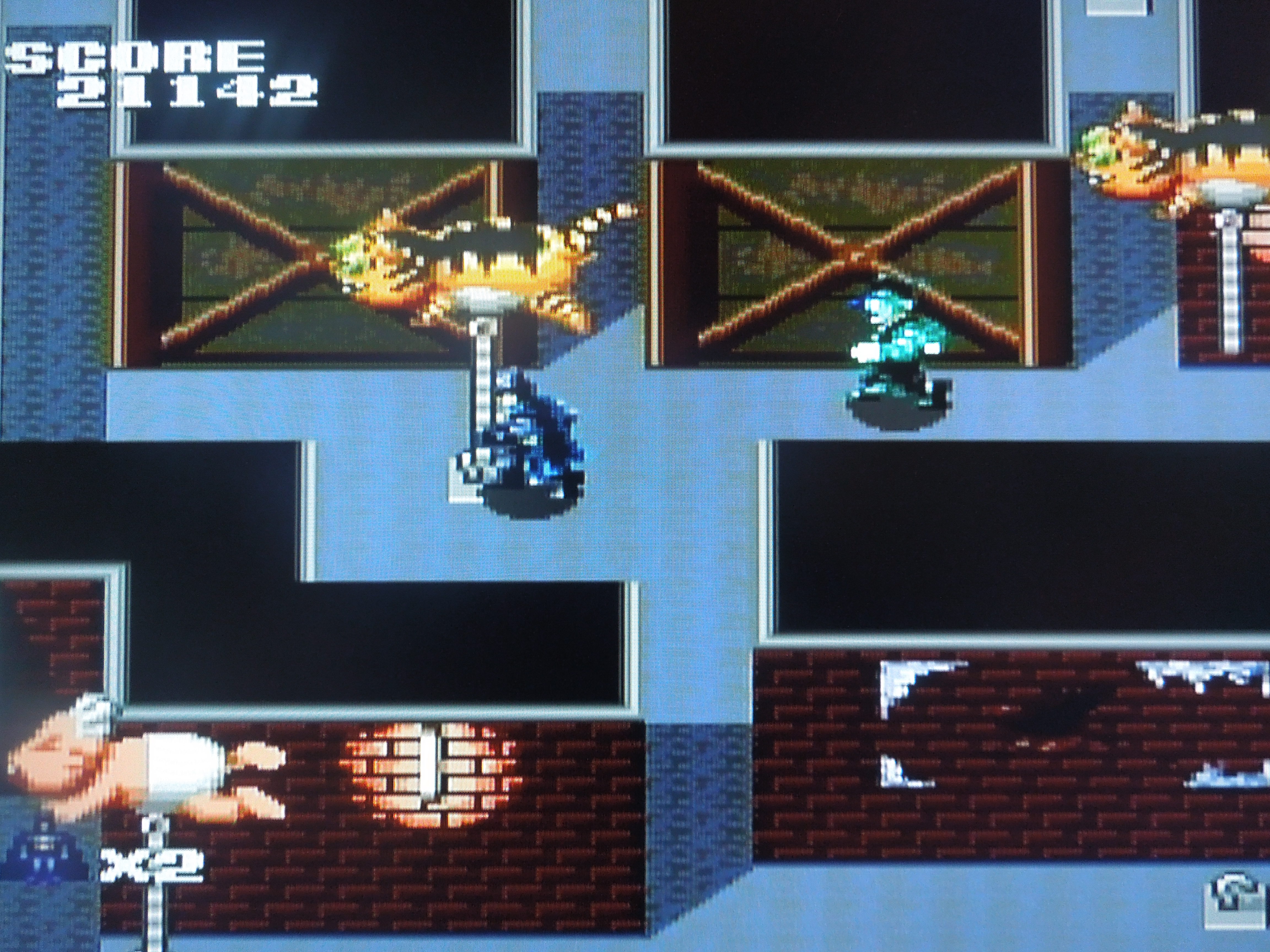 Controls: Very simple. The game is from an overhead perspective, and you use the control pad to walk in all directions. Both Button I and Button II perform the same function – throwing you bat-a-rang (projectile). Run pauses the game. That’s it!