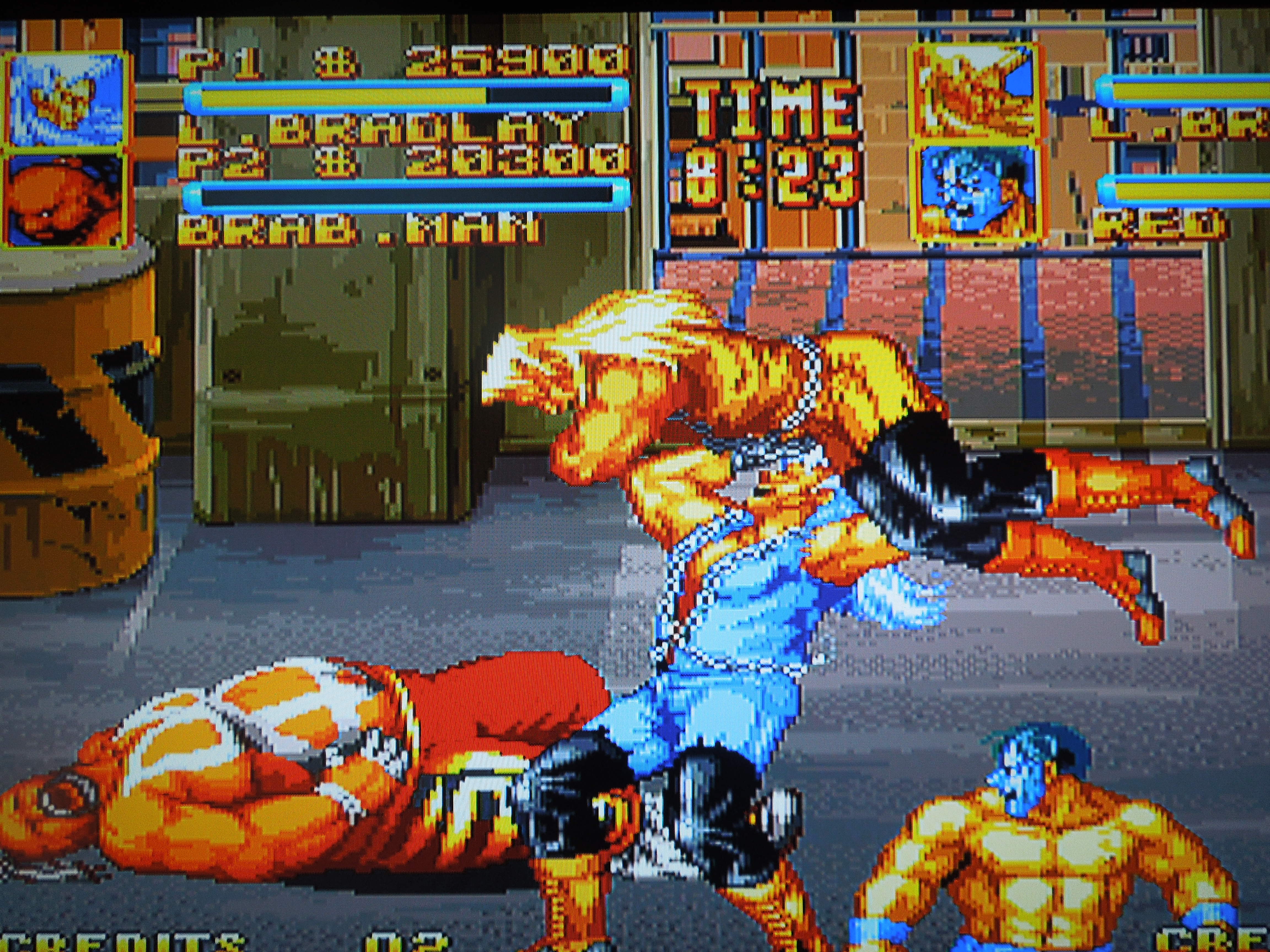 Note 2: This game was played on a Neo Geo AES home console that has been modified to output in component video (red, green, blue). It was connected to a 32-inch HD tv.