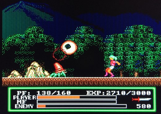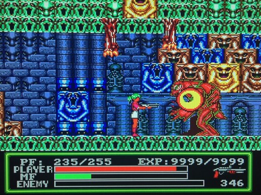 STAGE 3: In the SNES version, Stage 3, as mentioned, starts off in the area you see below. The background screen alternates between stars and the Technos logo.
