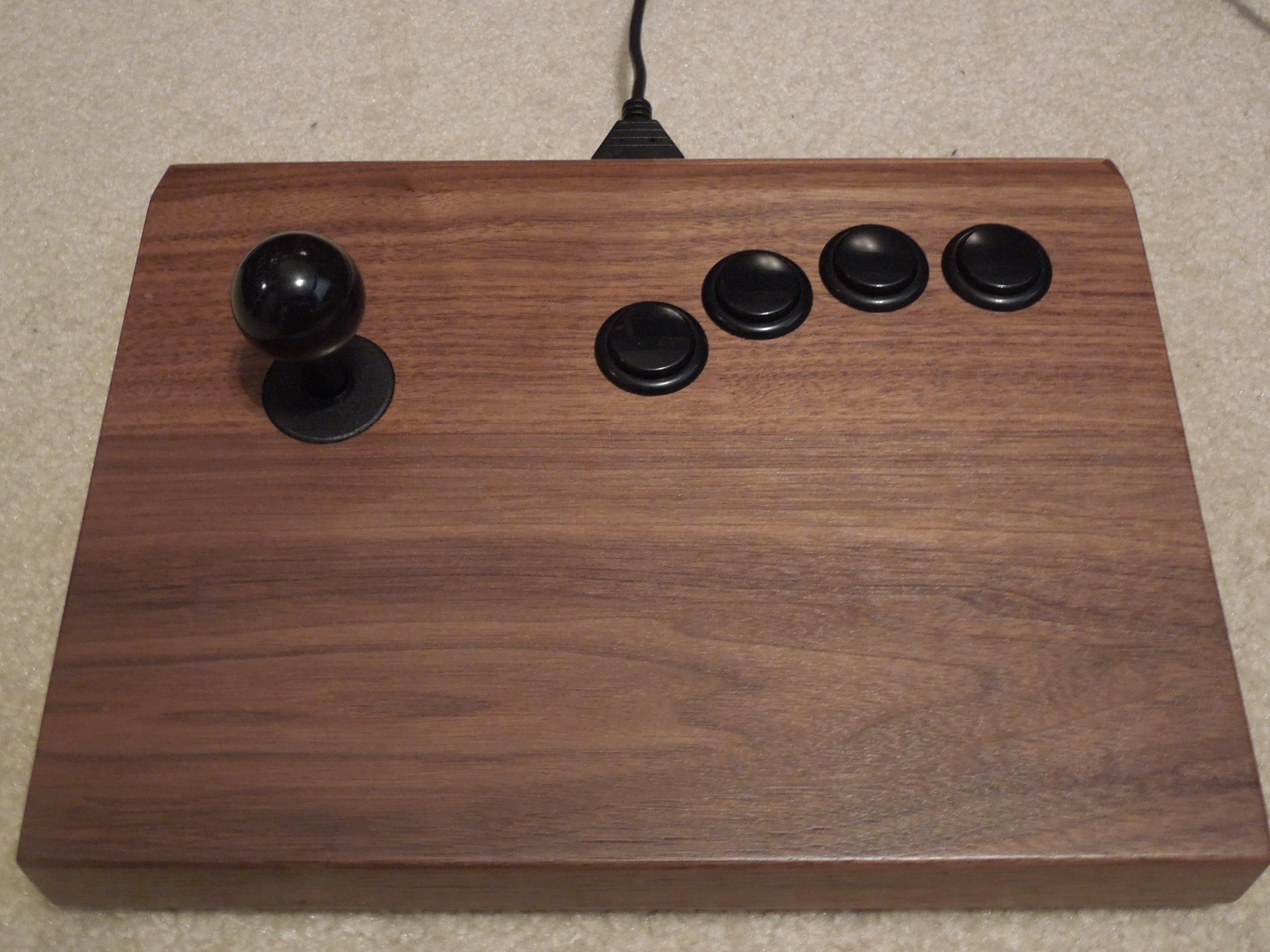 The Walnut Arcade Stick dwarves (somewhat) the Neo Geo Pro Controller and the SNES Advantage. The Walnut Arcade Stick dwarves (somewhat) the Neo Geo Pro Controller and the SNES Advantage.