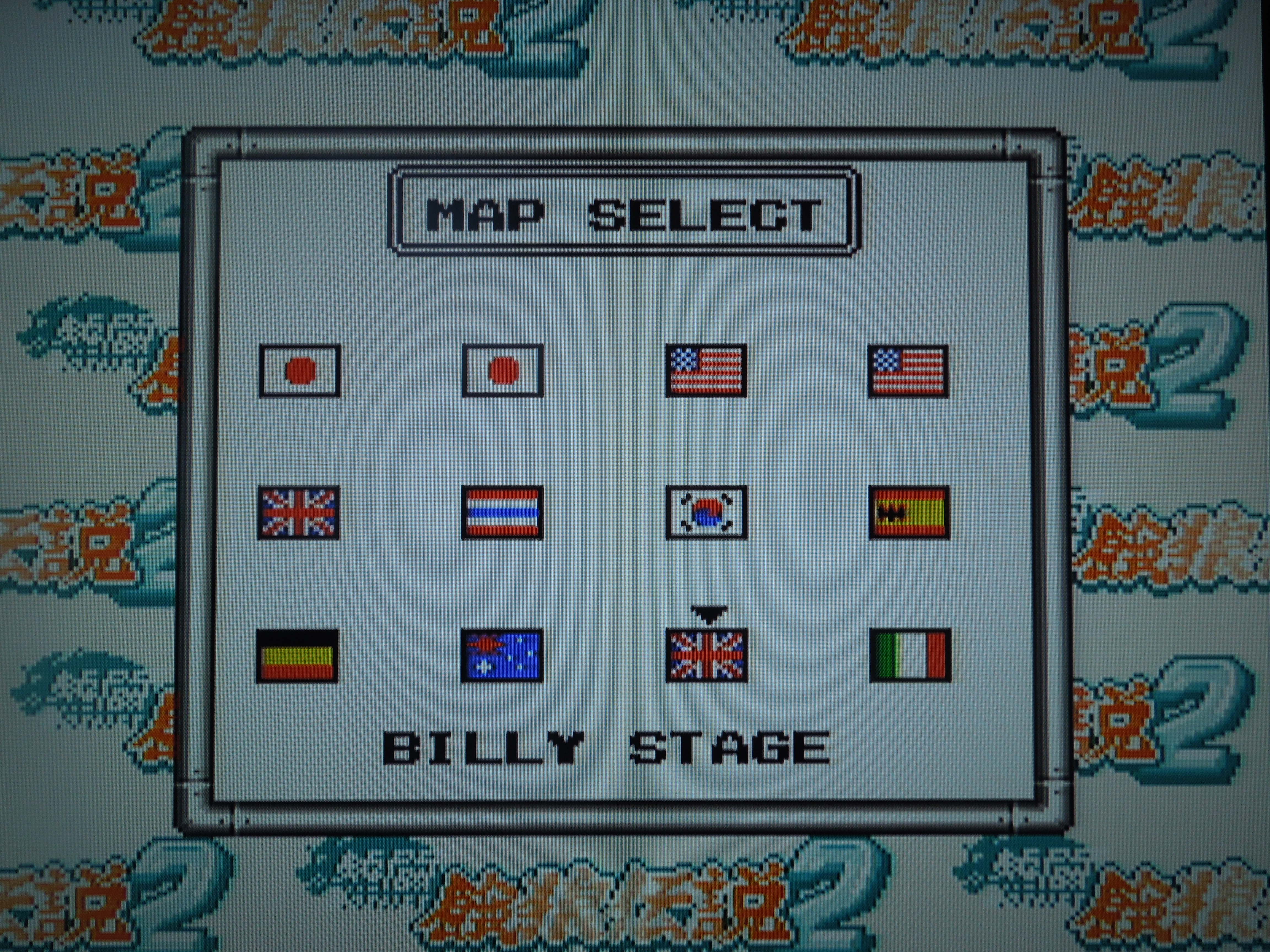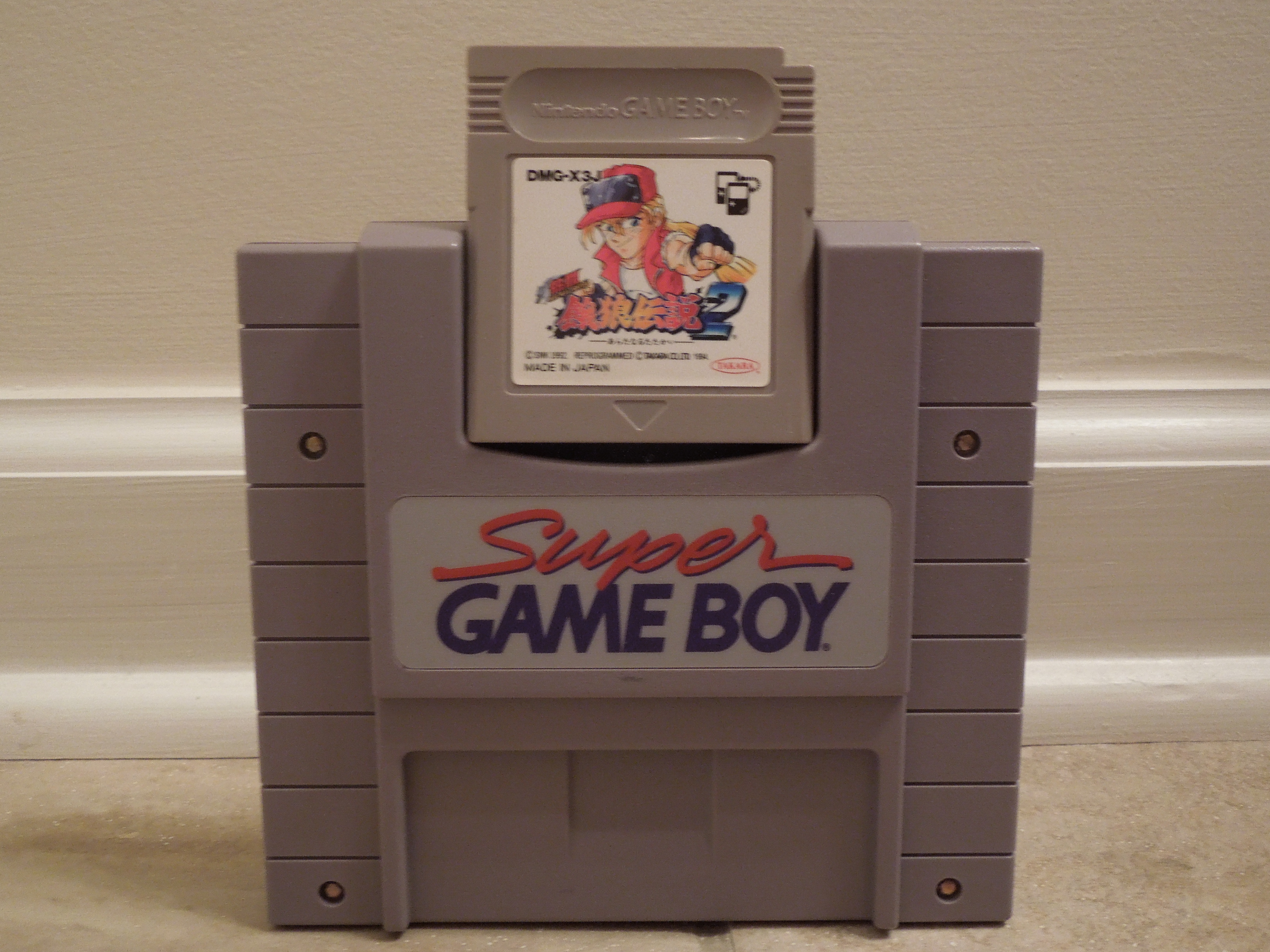 Quick History: Nettou Garou Densetsu 2 (translated: Dead Heat Fighters Legend of the Hungry Wolf 2), better known as Fatal Fury 2, was released for the Game Boy handheld system exclusively in Japan in 1994. Fatal Fury 2 was originally released for the Neo Geo MVS (arcade) and AES (home console), as well as being ported to numerous other home consoles. Fatal Fury 2 for the Game Boy used a ‘super-deformed’ art style, and it was also made to play with ‘bonuses’ on the Super Game Boy, a device that plugged into a SNES and allowed you to play Game Boy games on your tv, in color. These ‘bonuses’ included a special Fatal Fury 2 game border, pre-set color palettes (although you can change the colors if you want), and the ability to play a 2 Player VS. match without having to have an extra Game Boy, game cartridge, or link cable – all that is needed is 2 SNES controllers.