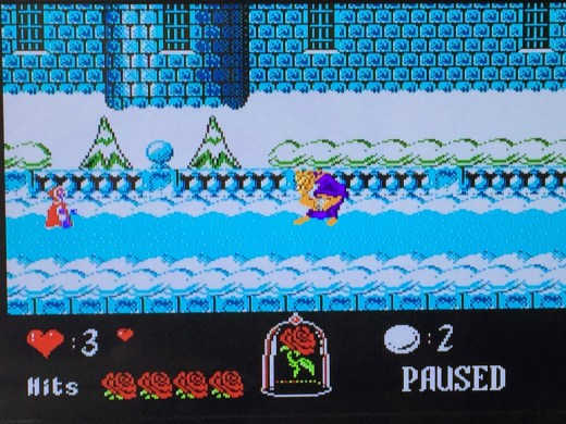 Difficulty:  This is subjective, I know. At first play, it has parts that appear to be ridiculously hard, but they just take practice. Once you know where to go and how to react, you could beat the game in 25 minutes, no problem. The level where you have to catch the snowballs from Belle almost made me give up the first 5 times, but now it’s easy as can be.