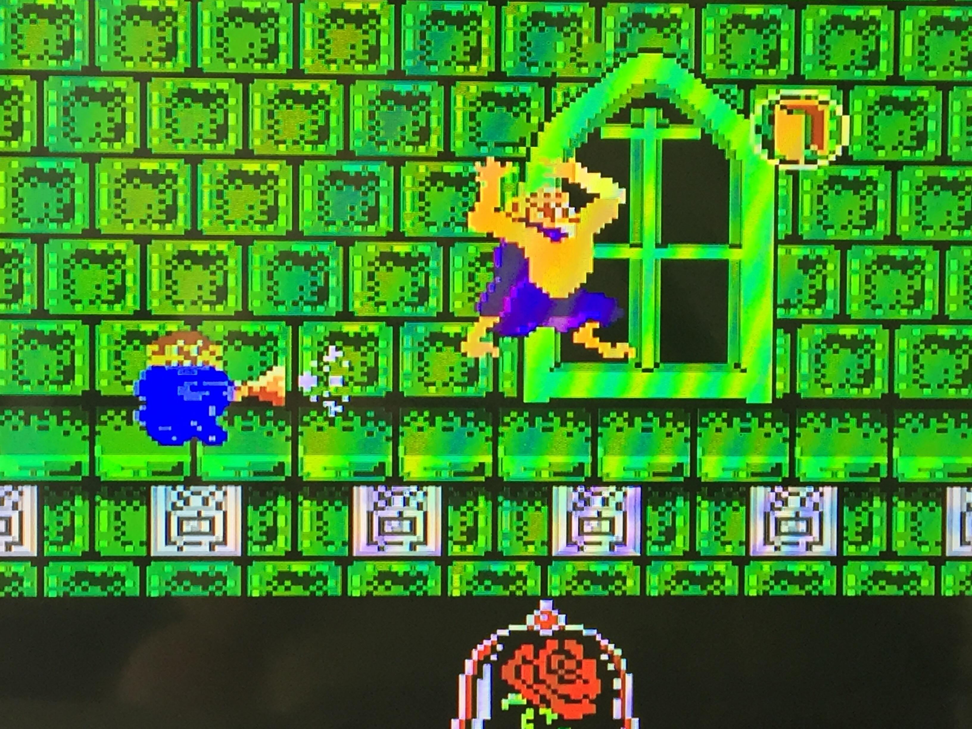 Gameplay: Jump, punch, and growl (freezes enemies) your way through 4 levels to ultimately punch Gaston off the top of your castle, win Belle’s love, and turn back into a human. Each level has multiple parts, many of which require multiple playthroughs to master, but nothing impossible. Beast is clunky to control, but learnable.  The game took me a couple of weeks to beat, playing here and there. The AVS has no save states, or anything like that, which I prefer – gotta beat it the old fashioned way – trial and error, angry words, and perseverance.