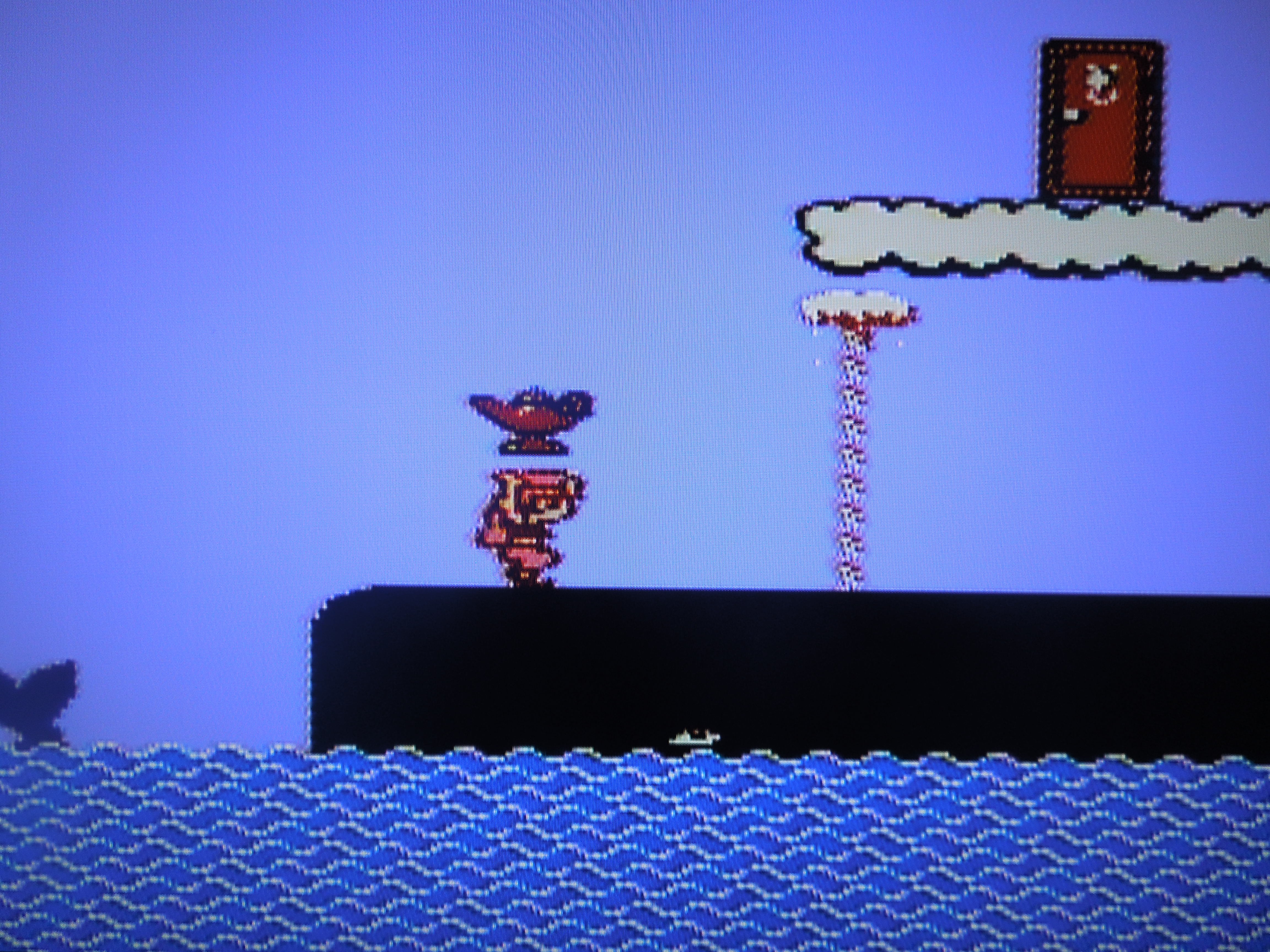 Gameplay:  You must travel through 7 levels, each with 3 stages (except for level 7, which has 2 stages), to rescue Rick and Bob from Wart.  At the beginning of each stage, you can select between Papa (changed to Mario for the U.S. game), Mama (later changed to Luigi), Brother (later changed to Toad), and Sister (later changed to Princess Peach).  At the beginning of each stage, you are allowed to change which character you want to play as.  Each of the 4 family members controls differently:  Papa is balanced with an average jump and average speed of picking up items; Mama jumps the highest, but is the slowest at picking up items; Brother has the lowest jump but picks up items the fastest; Sister has the 2nd highest jump (and the ability to kind of ‘hover’), but has below-average speed picking up objects.  During each level, you can find magic lamps (later changed to magic potions in the U.S.) that allow your character to temporarily enter Sub-Space in order to collect Heart power-ups (later changed to Mushrooms in the U.S.) or coins to use in bonus games for extra lives between levels.  You’ll frequently face mini-bosses at the end of most stages.