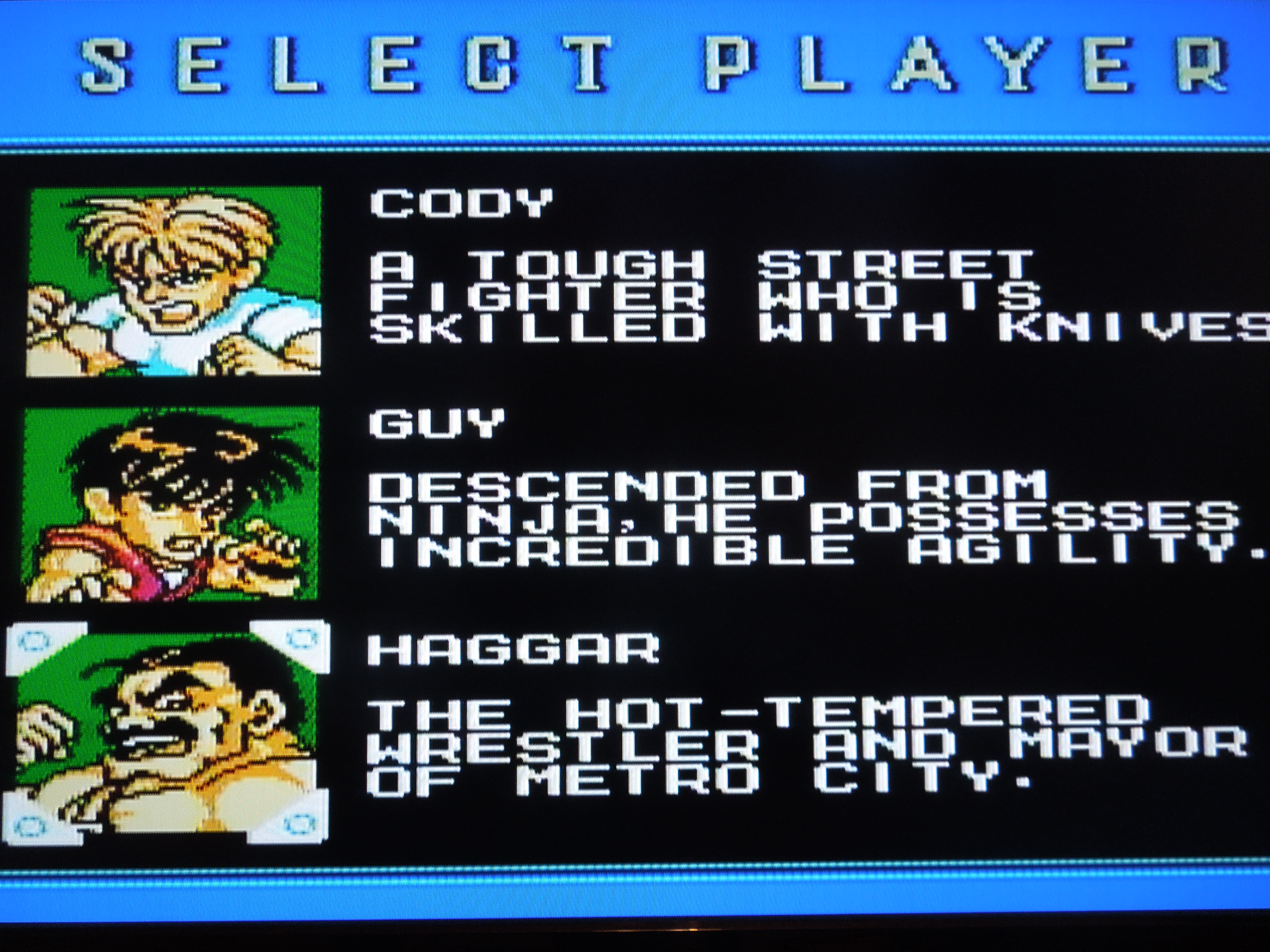 Conclusion: This is one heck of a Beat ‘Em Up. The characters are big and detailed, and they’re drawn in that ‘super-deformed’ art style, which, personally, I’ve always thought works well in these type of games. There is some very slight flicker, occasionally, with bigger enemies on screen. The control, music, and sound are all great. The addition of the ‘leveling up’ system is a nice touch, yet doesn’t detract from the simplicity of the game. Is it repetitive? Of course, and that’s what makes Beat ‘Em Ups so great! Being able to choose among all 3 characters is great, instead of only 2 like in the SNES game. You can change characters if you have to continue. 2 player co-op would have been a wonderful addition, but it’s sadly absent. I’m not sure of another game quite like this one for the NES – perhaps River City Ransom is closest, but even that is a stretch. Is this game better than the SNES’ Final Fight or the lesser-known alternate version Final Fight Guy? Yes, it is. And that’s saying something, because those games are terrific.