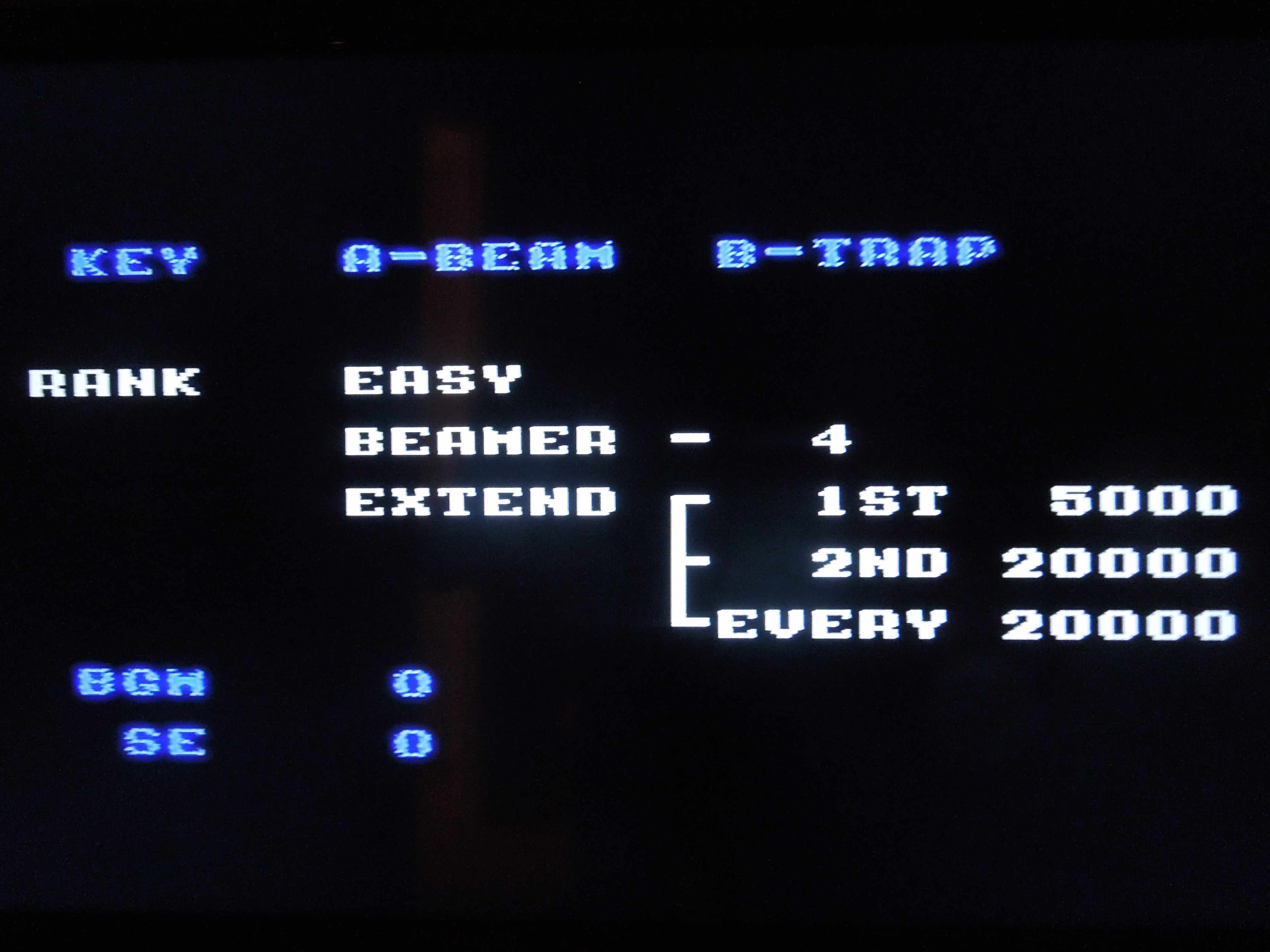 Code: Holding A + B at the title screen pulls up a hidden options menu, allowing you to listen to the different songs and sounds from the game, change the difficulty from its Normal setting to Easy, Hard, or Pro, and change up the button layout for zapping and trapping. Changing the difficulty allows you to give yourself more or less lives based on which one you select, and this also affects how often you gain extra lives (you gain extra lives by zapping ghosts and earning points, and you gain extra lives by reaching certain point totals). I really like the ability to change the button layout, as the game (for me) is much easier to play with the zap button assigned to button B and the trap button assigned to button A, as opposed to the default setup.