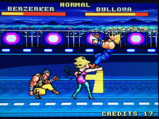 So, which version is better? It would be great if you could combine the ‘life bar’ and story elements of the SNES version with the slightly longer stages, additional moves, blood, and weapons of the arcade. The addition of the story is an awesome addition for the console version. It’s really an apples and oranges comparison, however, because obviously the SNES is not as powerful as an arcade. Based purely on the graphics, the arcade has a slight edge. The SNES version is also easier than the arcade. It’s not ‘easy,’ mind you, just easier than the arcade. The SNES game will take you less time to beat than the arcade version. There are less bad guys, and generally speaking, they’re not quite as aggressive in the SNES version – except Martha Splatterhead – she’s relentless in both versions. You can’t lose with either version, but I’d stick with the SNES version if I had to choose.