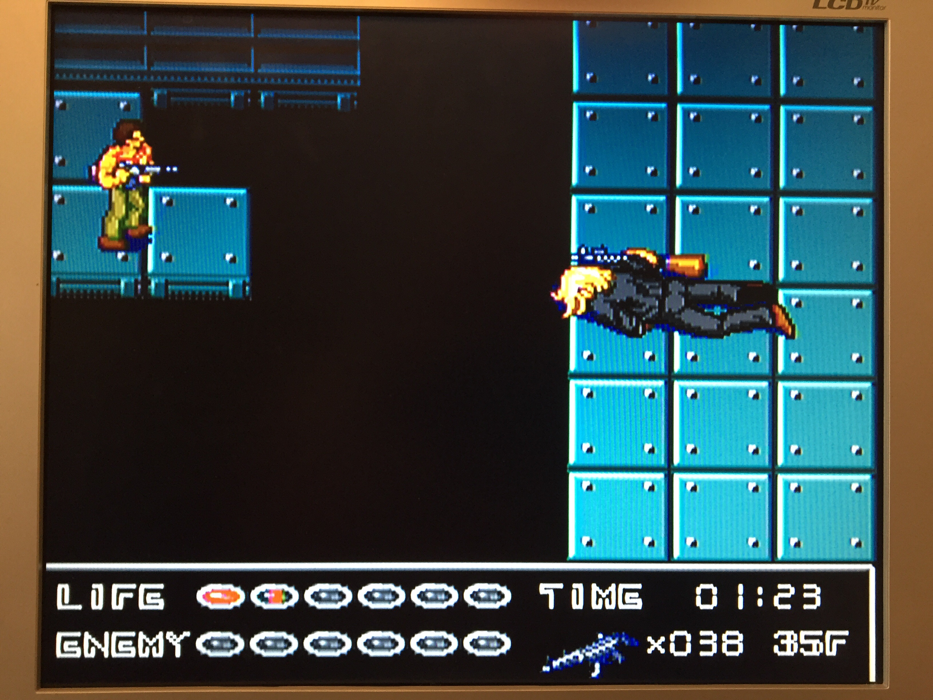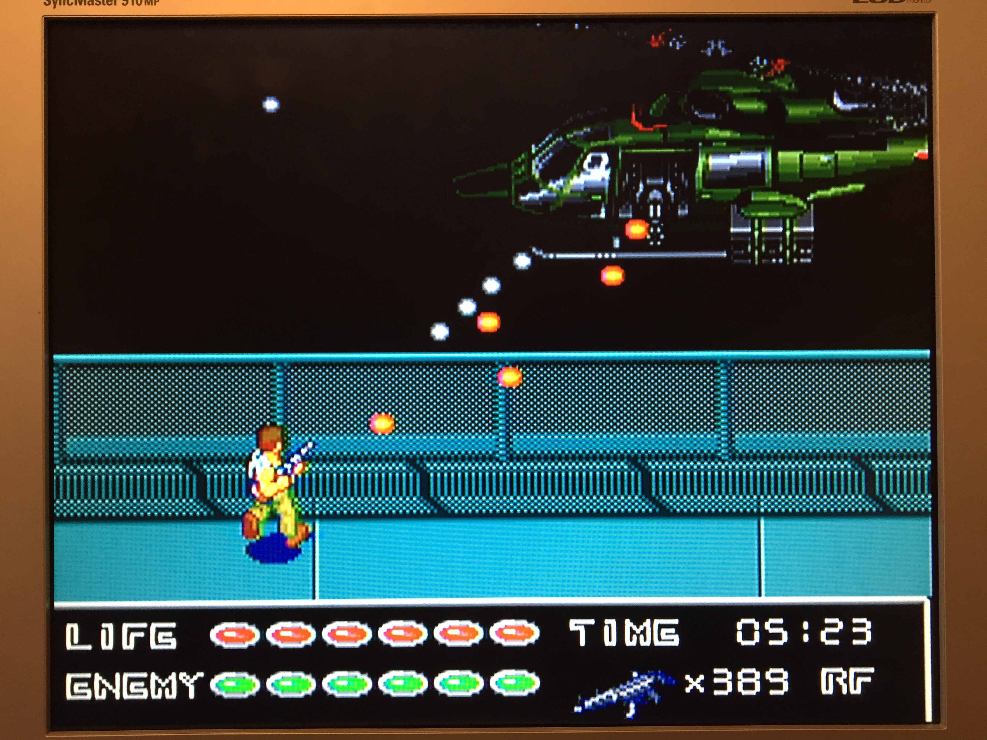 Note: Die Hard was played on a 19 inch tv. The console is a PC Engine (Japan version of TG16) that is modded to allow Turbografx 16 games, and although Die Hard was only released in Japan, I requested that a reproduction maker make a TG16 version using a terrific English translation. This console was also modded for RGB and is outputting it through a SCART cable directly onto a tv I was fortunate to find that has a SCART input.  It looks awesome.