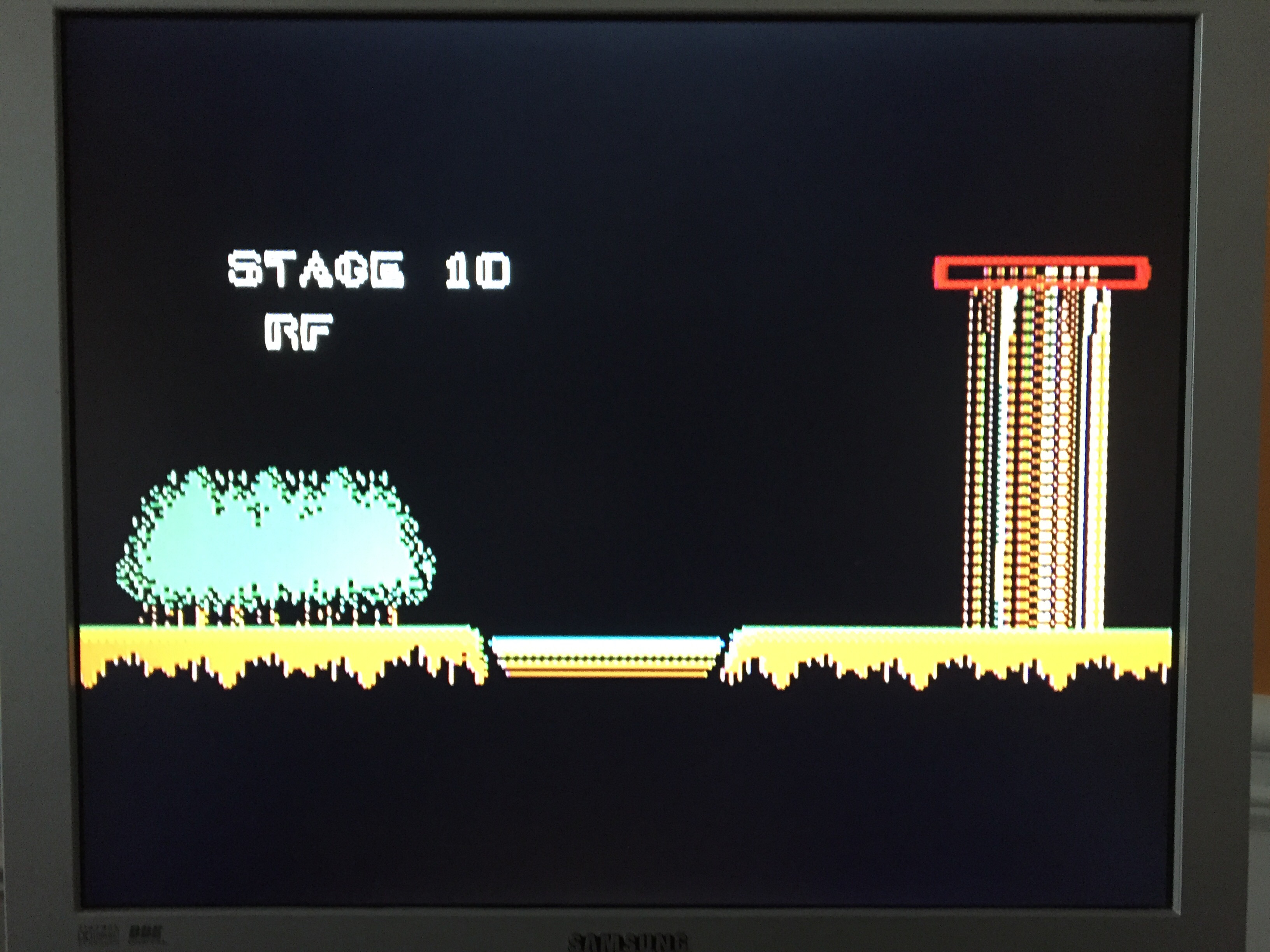 Stage 10 Help:  The last fight against the helicopter may seem tough, but is actually quite easy if you know what to do.  Stand on the far right and fire the machine gun. Jump or move out of the way of the normal bullets, and jump CONSTANTLY when the homing missiles come at you. As long as you’re in the air, the missiles won’t hit you near as often, and you can shoot them down without fear of getting hit. Yes, the helicopter takes awhile to bring down, but it drops approximately 3 beer bottles periodically and a first aid kit near the end.  It also drops multiple machine guns, a couple of rocket launchers, and a flamethrower.  Even with all this fire power, you may still run out of ammo near the end.  I literally had to jump and PUNCH the helicopter for the last few hits to make it explode – surely one of gamings all time great moments.